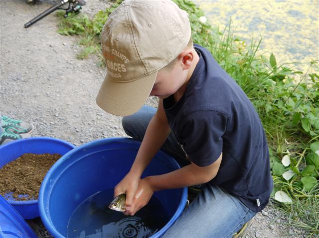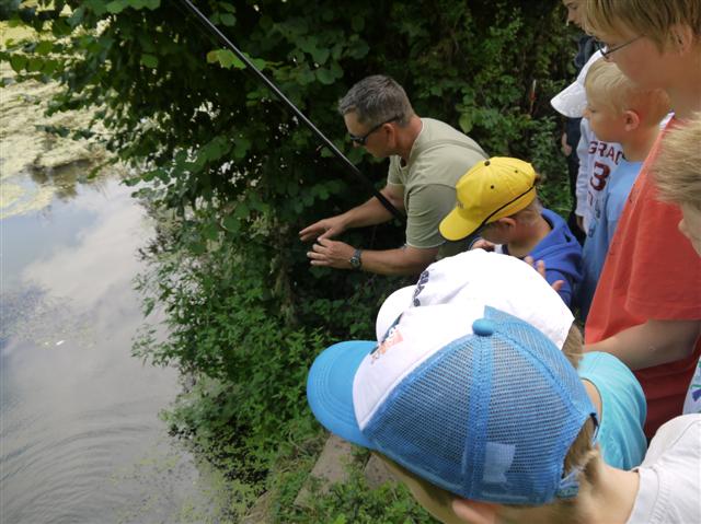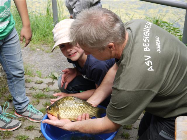 Bei der diesjährigen Sommerferien-Aktion des Angelsportverein Besigheim am 14.08.2013 nahmen 23 Kinder zwischen 8 und 12 Jahren teil. Am Vormittag gab es verschiedene Stationen wie Gerätekunde, Casting-Werfen, ein Zuordnungsspiel verschiedener Lebewesen des Neckartalsees und Fischkunde, an denen die interessierten Kids viel Neues erfahren und ausprobieren konnten. Nach der Mittagspause mit gegrillten Würstchen, durften die Kinder ihr Glück selbst probieren. Unter fachkundiger Aufsicht von Markus, Hansi, Alex, Timo und Andi wurden einige Rotfedern und Rotaugen gefangen. Der zweitgrößte Fang war ein 34cm langer Giebel. Bei der Gesamtwertung machte aber ein 37cm langer Giebel den ersten Platz. Der 12-jährige Lukas Ritow bekam für seinen Fang sogar einen Pokal.