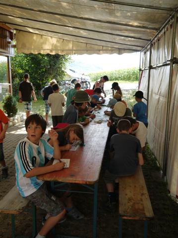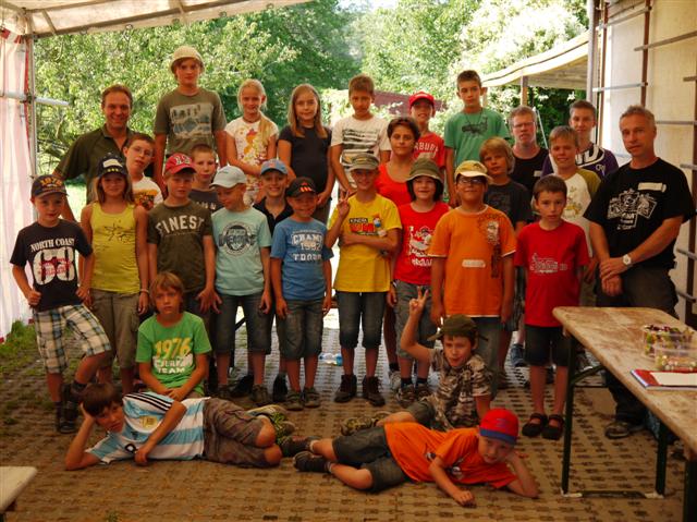 Sommerferien-Programm beim Angelsportverein Besigheim von Anja Witt Schon am ersten Tag der Anmeldemöglichkeit war die Liste fast voll! 25 Kinder zwischen 8 und 12 Jahren meldeten sich telefonisch beim Vorstand des ASV, Markus Haab, an. Am Freitag, dem 17. August 2012 trafen sich 9 engagierte Mitglieder des ASV zum Aufbau und erwarteten die 25 neugierigen Teilnehmerinnen und Teilnehmer. In der Zeit bis zum Mittagessen durften die Kinder in Gruppen verschiedene Stationen durchlaufen: