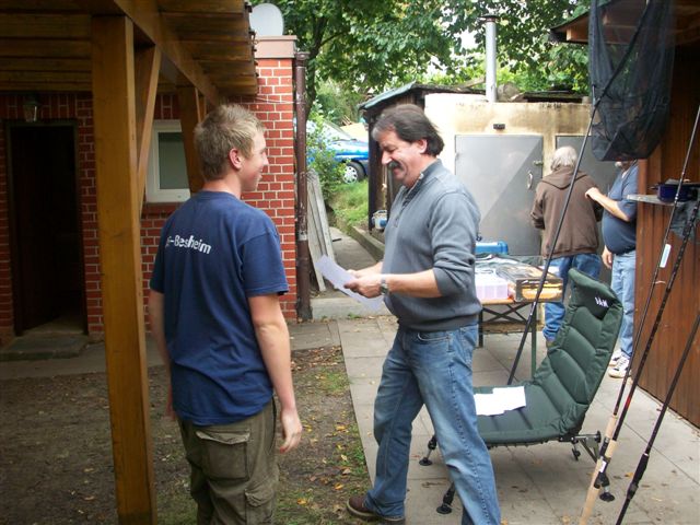 2. Jugendhegefischen am Waldsee ausgeführt vom ASV-Steinheim. Leider waren nur zwei Jugendliche aus Besigheim am Start. Alex Hirschle, der trotz vieler Bemühungen (wie viele andere) kein Fisch zu Gesicht bekommen hatte und Ken Geiger dem das Glück hold war und einen schönen Graskarpfen mit 5600gr.an Land ziehen konnte und damit auch den ersten Platz erreichte. Ein Dank auch an den ASV-Steinheim der den Jugendlichen mit tollem Wetter und einem guten Mahl den Tag verschönte. Petri Hans-Peter
