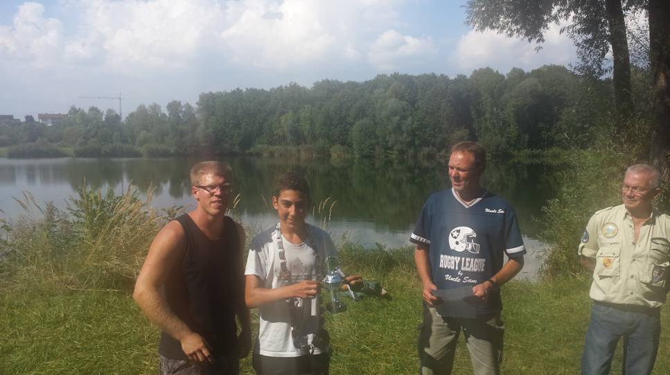 Nach einer Stärkung und gemütlichem Beisammensitzen kam die Siegerehrung. Bei den Jugendlichen belegte Federico Bonetti mit einem Rotauge von 140 Gramm den ersten Platz und wurde somit Fischerprinz. Unser Fischerkönig wurde Erwin Schlabschi mit einem schönen Spiegelkarpfen von 9200 Gramm. Es wurden noch weitere schöne Fische von einigen Mitgliedern gefangen, die für gute Platzierungen sorgten.