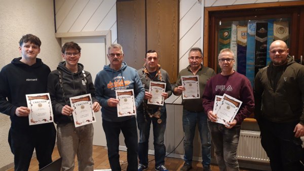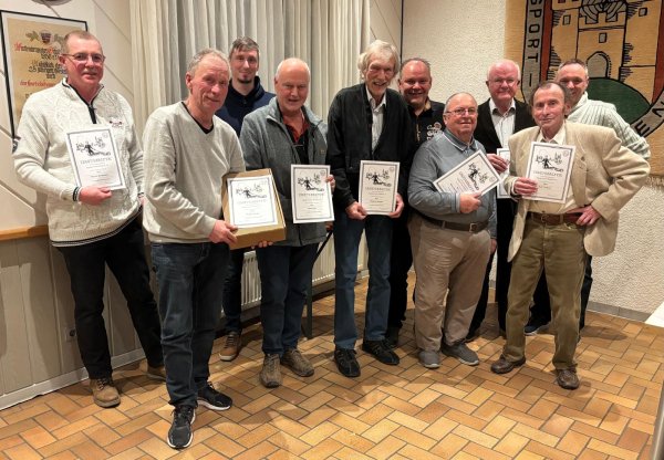 Folgende Mitglieder wurden geehrt: Herr Sebastian Härtsfelder - 10 Jahre, Herr Marc-Benedikt Klinke - 10 Jahre, Herr Gerhard Ziegelbauer - 10 Jahre, Herr Rocco Astone - 25 Jahre, Herr Martin Bachmann - 25 Jahre, Herr Hans Eger - 25 Jahre, Herr Walter Geiger - 40 Jahre, Herr Manfred Semder - 40 Jahre, Herr Klaus Beckbissinger - 50 Jahre, Herr Fritz Rieker - 50 Jahre, Herr Paul Schmid - 50 Jahre, Herr Rolf Trinkner - 55 Jahre.