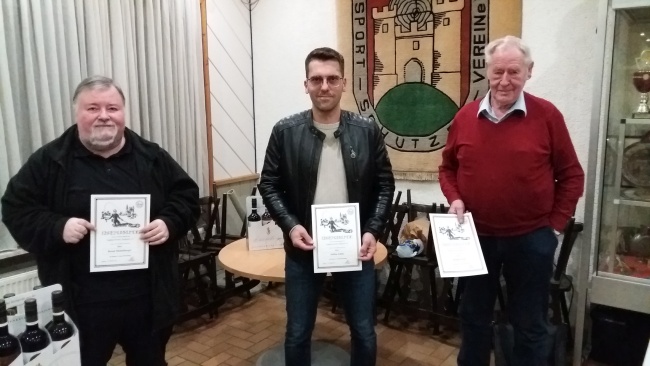 Im Anschluss fand die Vorstellung der Neuaufnahmen statt. Die neuen Mitglieder wurden von dem 1. Vorsitzenden vorgelesen und stellten sich der Versammlung vor. Danach wurden die Ehrungen der anwesenden, langjährigen Mitglieder durchgeführt. Der 1. Vorsitzende überreichte die Ehrennadeln mit Urkunde und Präsente. 10 Jahre im Verein: Steffen Schütz, 40 Jahre: Bernd Michelberger, Rena Pfahl und Ronald Wirth.