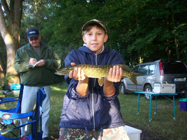 Platzierungen: 1. und somit Fischerkönig wurde Gerhard Schlabschi mit einem Karpfen von 7.660gr. 2. wurde Marco Geiger mit einem Karpfen von 7.600gr. 3. wurde Walter Demele mit einem Hecht von 5.400gr. 4. wurde Oliver Eiden mit einem Karpfen von 5.400gr. 5. wurde Roland Kies mit einer Brachse von 1.240gr. 6. wurde Hans-Peter Hirschle mit einer Rotfeder von 120gr. bei der Jugend belegte den 1. Platz Alex Hirschle mit einem Hecht von 700gr. und wurde somit zum Fischerprinz 2009 gekürt. 2. wurde Ken Geiger mit einem Rotauge von 120gr. Teilnehmer gesamt waren 19 Angler davon 2 Jugendliche die zusammen ein Gesamtgewicht von 27.720gr. zur Wage gebracht haben. ein Petri an alle wünscht, Hans-Peter