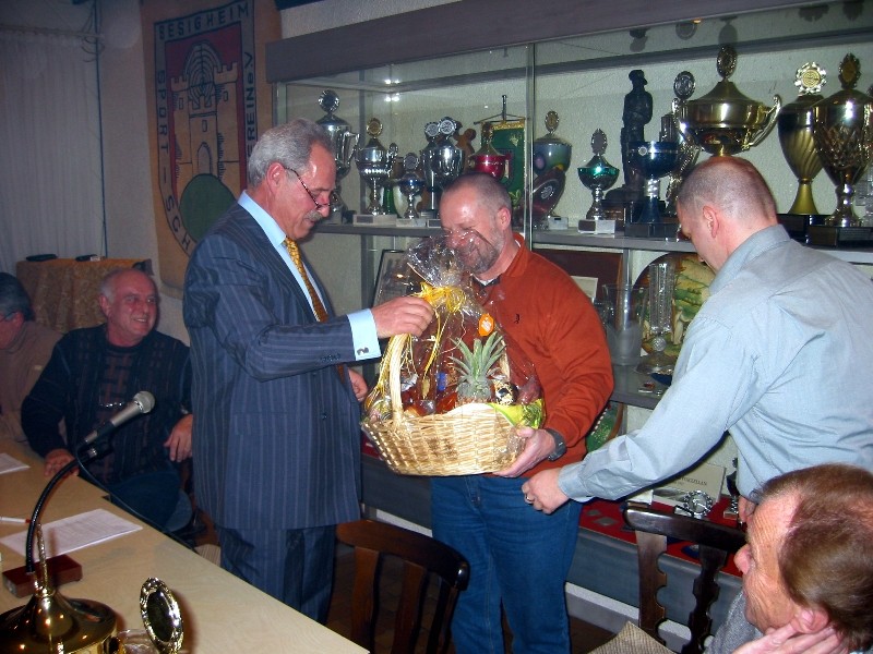 Übergabe von Geschenkkorb an Erwin Sinnl
